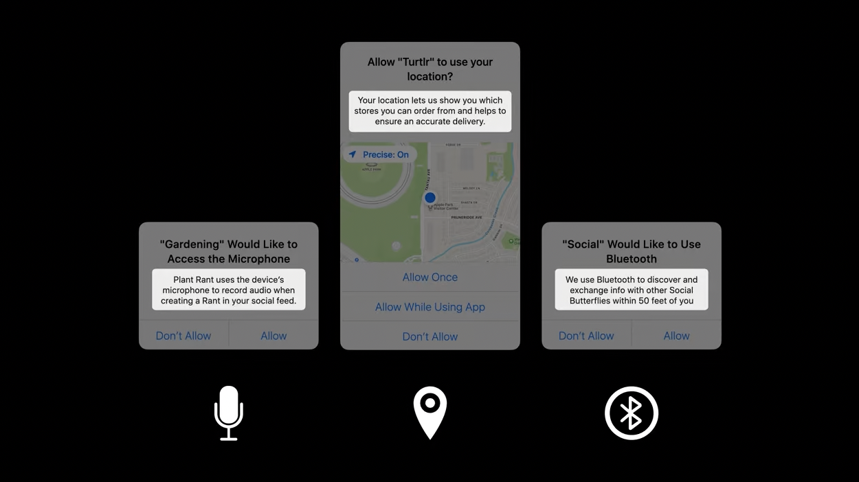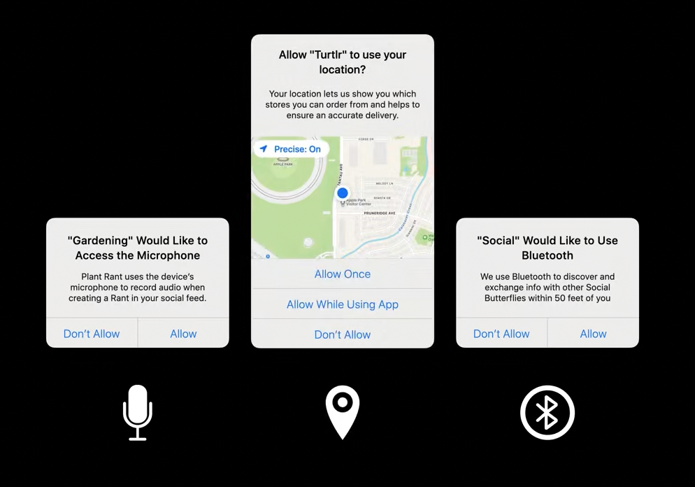 두 번째로는 앱에서 필요한 데이터만 요청하게 합니다. 데이터 최소화는 개인정보 보호를 위해 Apple이 하는 노력의 핵심이며 앱 개발자 또한 이를 도입하길 애플에서 권장하고 있습니다.