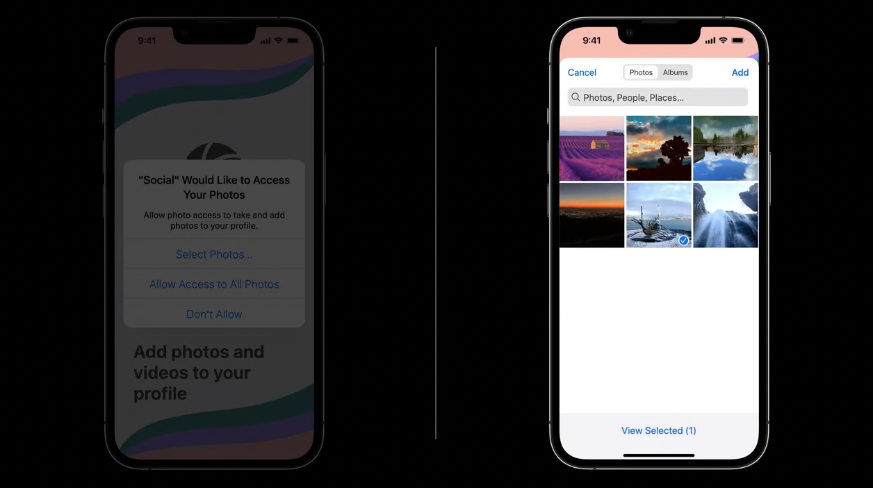 예시를 몇 가지 더 소개할게요 대다수의 앱에는 프로필 페이지에 사용할 사진을 선택하는 옵션이 있습니다 하지만 앱에서 이때만 사진 앱을 사용하는 거라면 사용자가 지금까지 찍은 모든 사진에 대한 접근 권한을 요청할 필요가 없습니다
