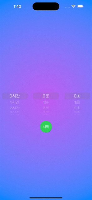 다음은 HourMinutePickerView로 타이머 시간을 설정할 수 있는 뷰입니다. @Observable를 활용하여 Picker 를 이용해 커스텀 Picker 뷰를 만듭니다. 또한 pickerStyle을 WheelPickerStyle() 로 설정하여 위아래로 드래그 하여 설정할 수 있도록 만듭니다.