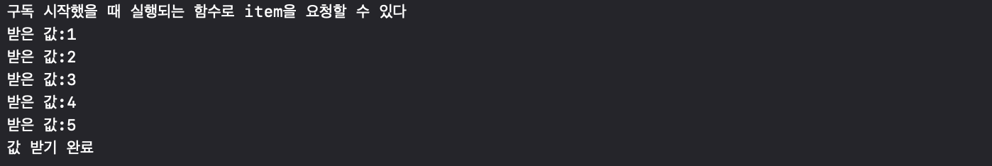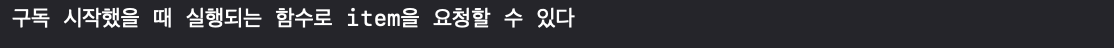 print("구독 시작했을 때 실행되는 함수로 item을 요청할 수 있다")