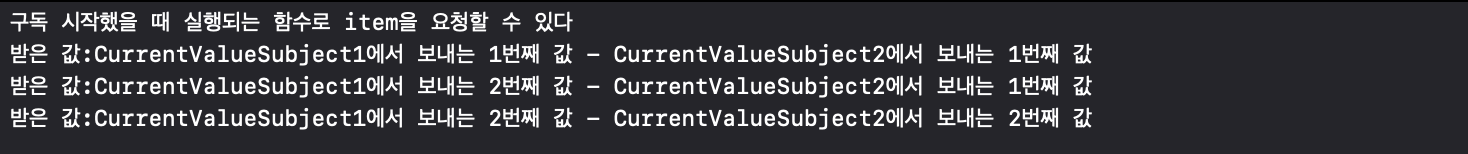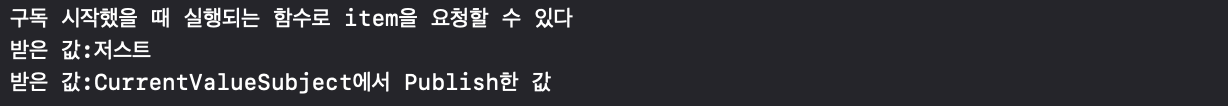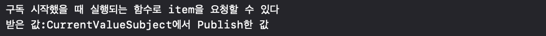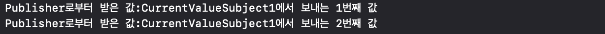 let publisher1 = CurrentValueSubject<String, Never>("CurrentValueSubject1에서 보내는 1번째 값")