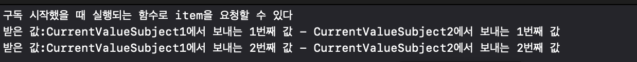 let publisher2 = CurrentValueSubject<String, Never>("CurrentValueSubject2에서 보내는 1번째 값")