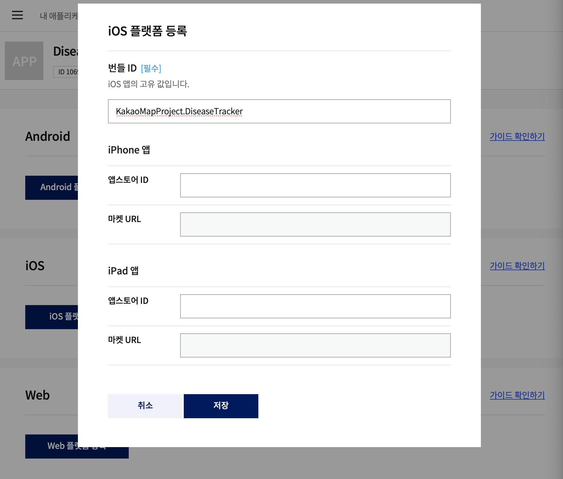 이후 iOS 플랫폼을 등록해야합니다.