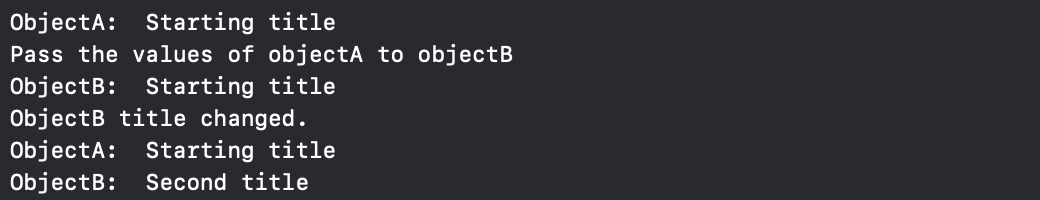 그렇기 때문에 title을 var로 변경하면 objectB의 title의 값을 변경할 수 있게 됩니다.