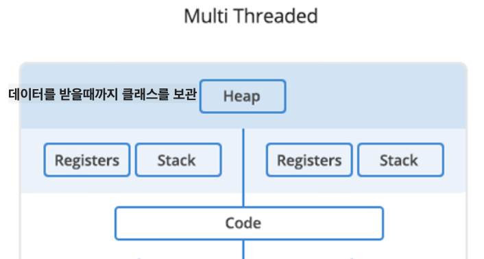 분석이 끝났다면 이제 이유를 알아봅시다, Class는 데이터를 Heap에 저장된다고 했습니다. 이때 Heap은 스레드에서 하나만 존재하며 만약 코드에서 여러개의 클래스 인스턴스가 존재한다고 하더라도 하나의 Heap에 동시에 접근할 수 없습니다.