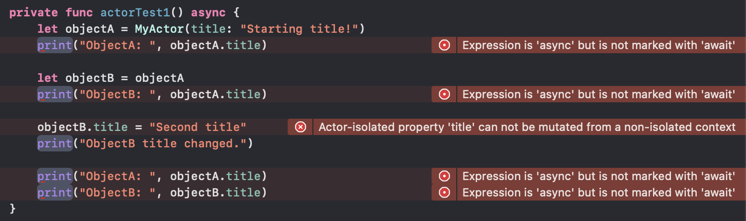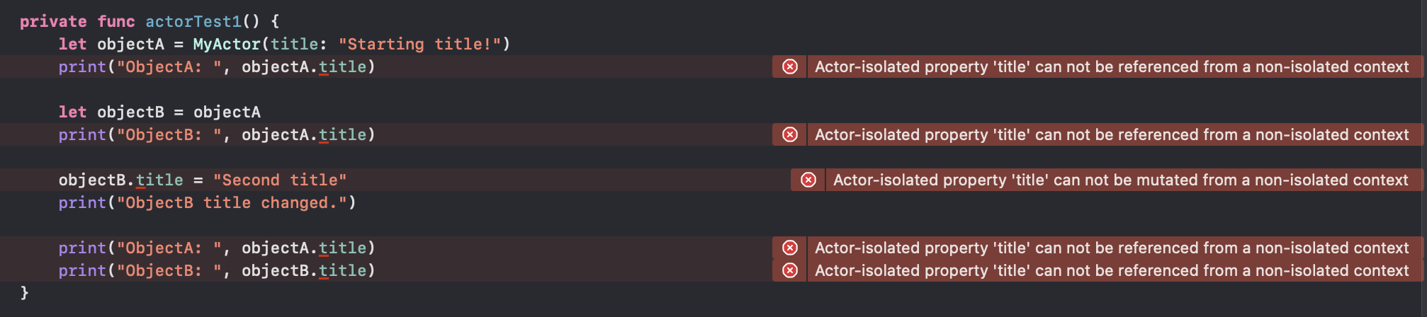 let objectA = MyActor(title: "Starting title!")