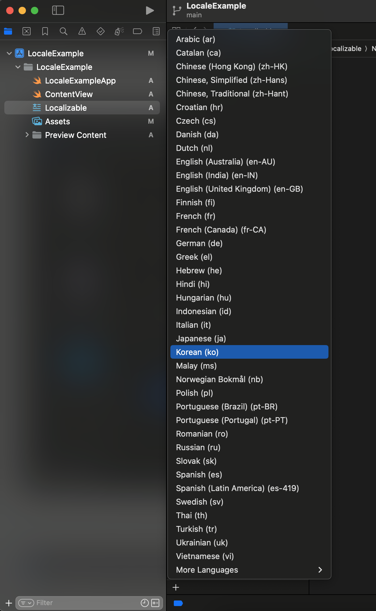 다음은 좌측 하단에 + 버튼을 통해 언어를 추가해줍니다.