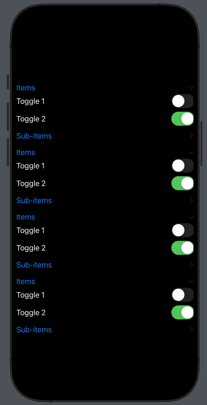 DisclosureGroup("Items", isExpanded: $topExpanded) {