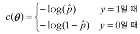 다시 말해 선형 회귀는 y를 가지고 비용함수를 게산했다면 로지스틱 회귀 모델은 아닙니다.