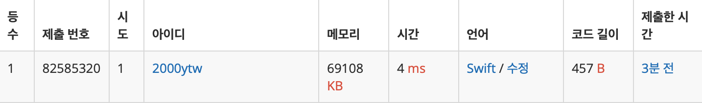| Swift - 백준 2108번 통계학 (0) | 2024.08.22 |