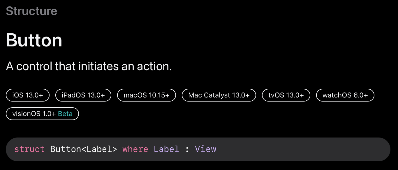 흔히 사용되는 것으로 클로저를 통해서 설정하지 않고 Button의 첫번째 인자로 title을 문자열로 또는 LocalizedStringKey로 선택적으로 설정하고 이미지의 이름이나 저장된 이미지를 2번째 인자로 받을 수 있으며 이를 convenience initializer 라고 부릅니다.
