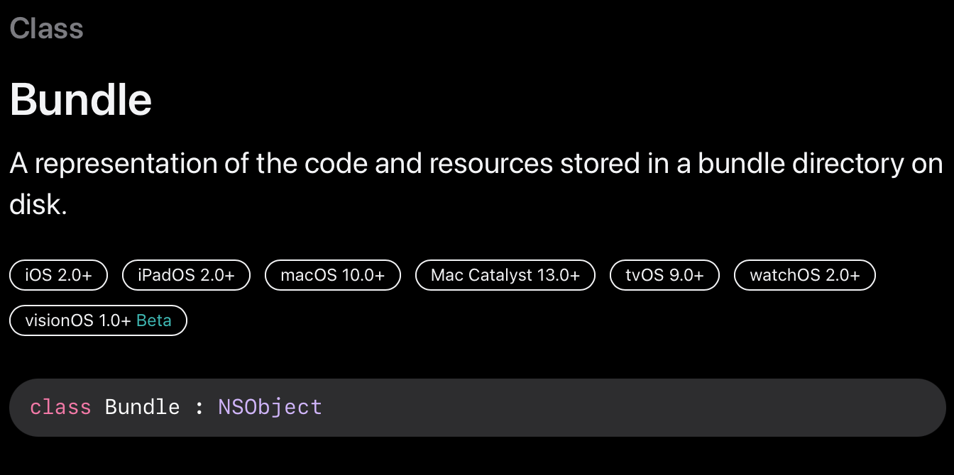 앱이 plug-ins, 프레임워크 또는 기타 bundle content와 직접 상호 작용하는 경우, 이 클래스의 다른 방법을 사용하여 적절한 bundle 객체를 만들 수 있습니다. 알려진 URL이나 path에서 항상 bundle 객체를 만들 수 있지만, 다른 방법을 사용하면 앱이 이미 사용하고 있는 bundle에 더 쉽게 접근할 수 있습니다. 예를 들어, 프레임워크에 연결하면, init(for:) 메소드를 사용하여 해당 프레임워크에 정의된 클래스를 기반으로 프레임워크 번들을 찾을 수 있습니다.