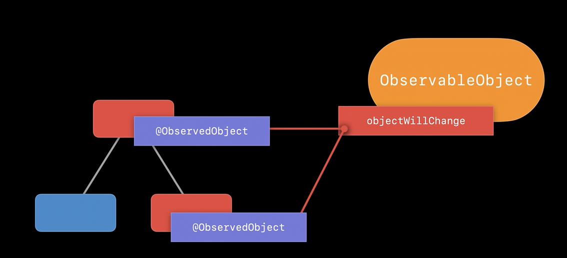 ObservedObject 는 사용할때는 SwiftUI 가 특정 ObservableObject 클래스의 objectWillChange를 구독합니다. 이후 ObservableObject 의 값이 바뀔때마다 ObservableObject 로 받고 있는 모든 뷰는 업데이트됩니다.