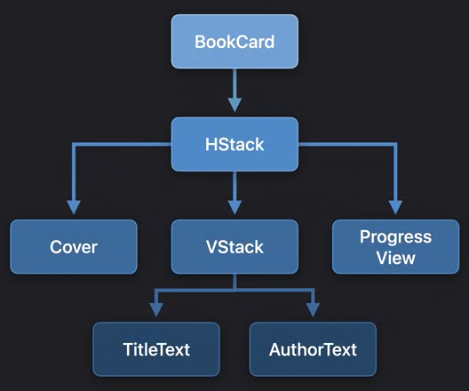 아래 간단한 뷰를 만들어내는 BookCard 가 존재합니다. book 과 progress 는 let 상수로 선언되어 있습니다.