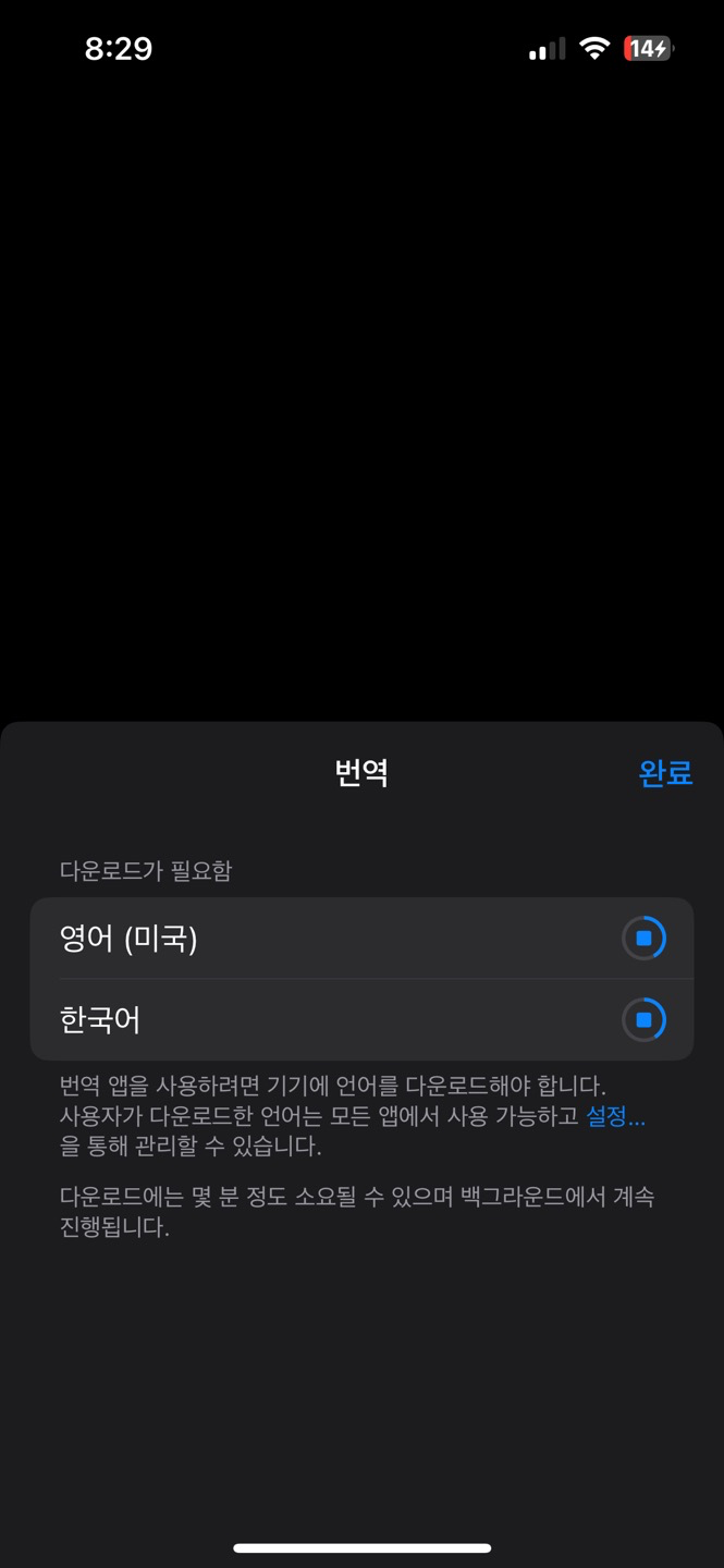 만약 처음 이 기능을 사용하게 된다면 해당 설정한 언어를 번역하기 위해 언어 소스를 다운받아야합니다.