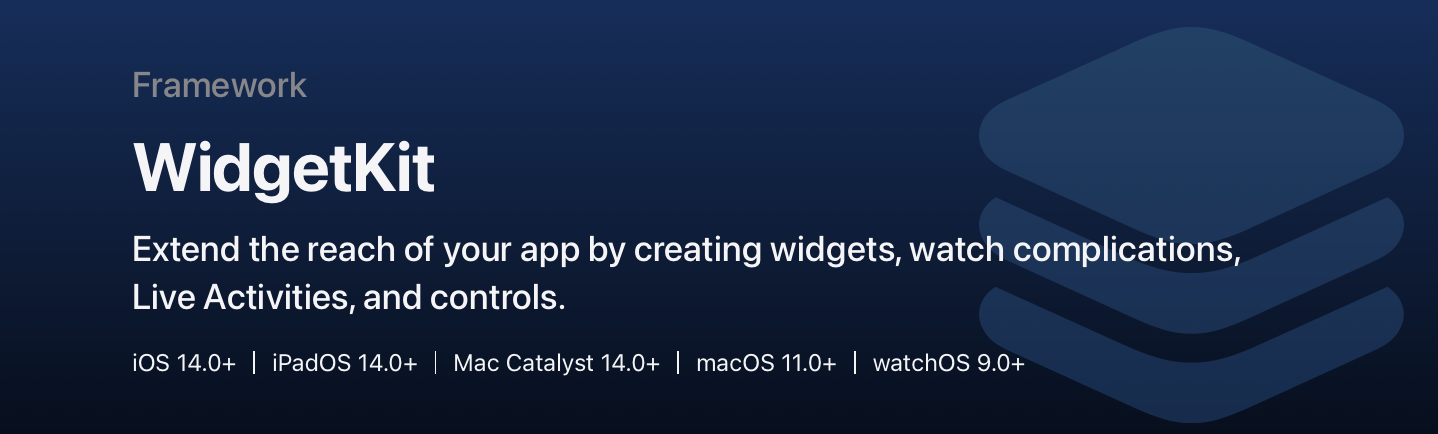 - WidgetKit은 iPad, iPhone, Mac, Apple Watch에서 사용할 수 있지만, 각 디바이스와 사용자 개인의 요구에 맞게 적절한 방식으로 기능을 제공합니다. 예를 들어, WidgetKit은 모든 플랫폼에서 다양한 크기의 위젯을 지원하며, Live Activities와 컨트롤 기능은 iPhone과 iPad에서만 사용할 수 있습니다.