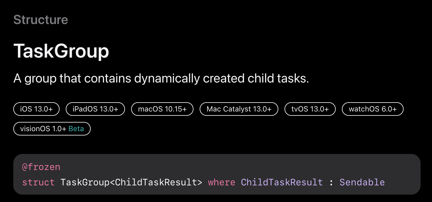 TaskGroup는 구조적 동시성(Structured Concurrency)의 기본 구조로, 그 하위 작업들과 그 하위 작업들의 하위 작업들까지 모두 자동으로 취소가 전파됩니다.