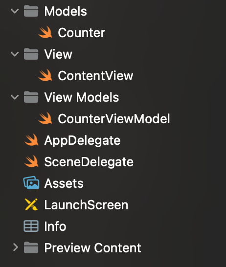 다음은 간단한 Model 예제 코드입니다. Counter 라는 구조체를 만들어 value, isPremium 변수를 만들고 increment() 함수를 만들었습니다. 여기서 mutating 을 사용하는 이유는 구조체의 변수의 값을 구조체 내부에서 변경하게 될 경우 mutating 을 사용해야 하기 때문입니다.