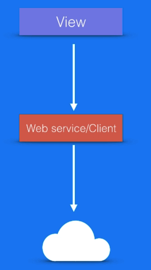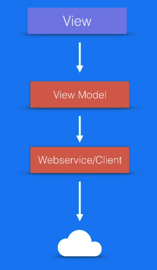 좋은 방법은 다음과 같이 View -> View Model -> Webservice/Client -> Cloud 순으로 데이터를 가져오는것 입니다.