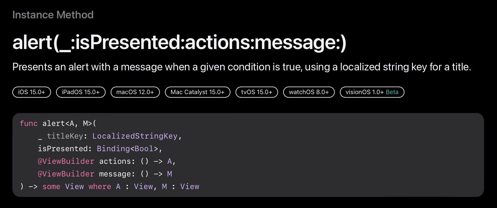 Button("Tap to show alert") {